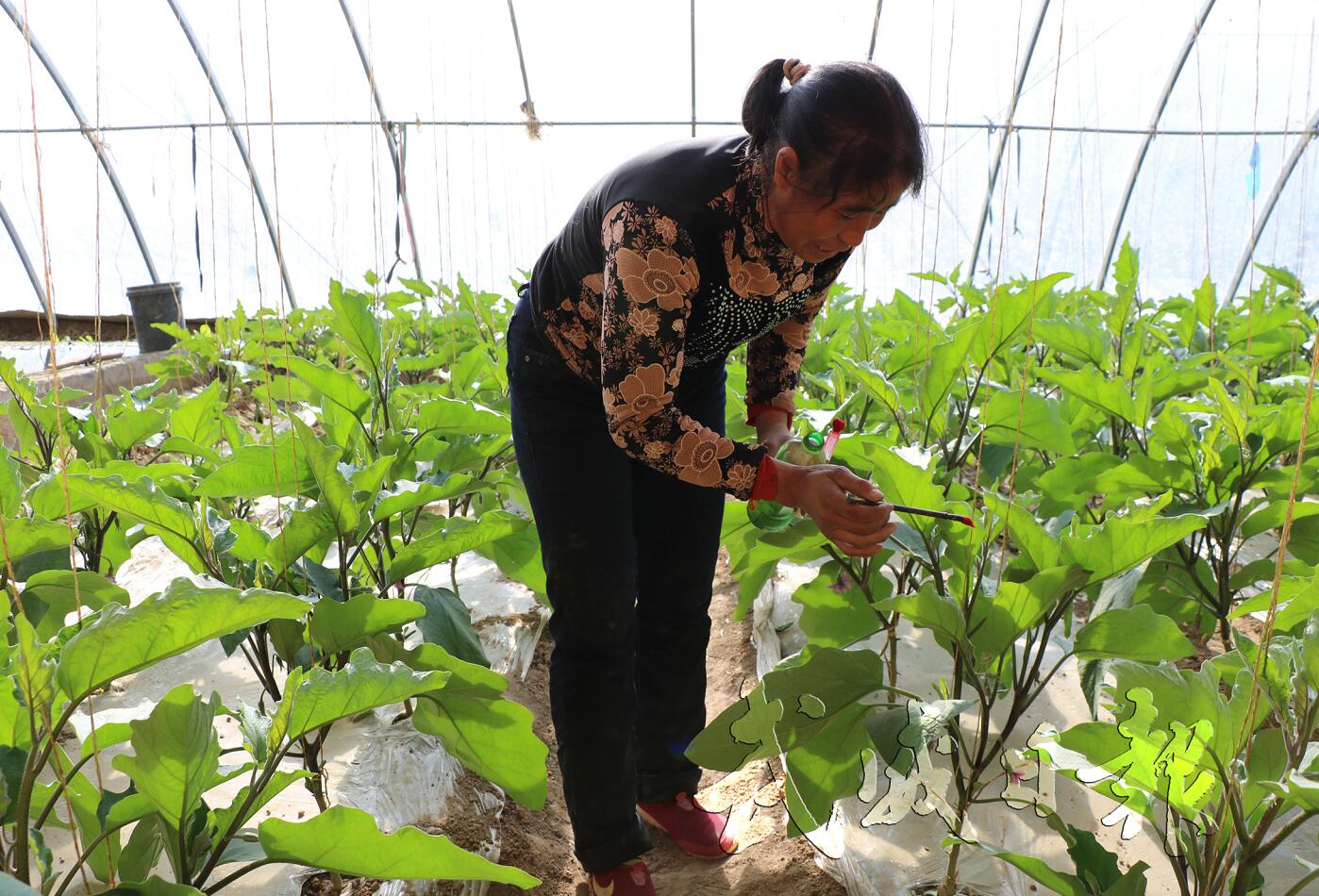 11月22日,古浪縣西靖鎮陽光新村社區村民宋桂香在自家日光溫室內勞作。2014年,宋桂香一家從山區搬到川區,積極發展日光溫室,每年收入1.5萬元以上,日子越過越紅火。