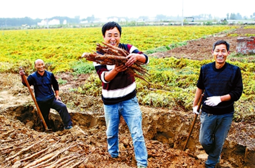 溫縣趙堡鎮種植專業合作社社員捧著剛挖出的鐵棍山藥喜不自禁,該合作社今年種植的2萬多畝鐵棍山藥喜獲豐收。