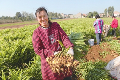 11月29日,孟州市趙和鎮司家溝村村民程青珍在收獲小黃姜。今年她引種的10畝無公害小黃姜喜獲豐收,畝產達1500公斤。如今,生姜種植已經成為當地農民脫貧增收的新渠道。
