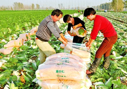 夏邑縣李集鎮郭莊村農民正在收獲大白菜。該村調整種植結構,一年三茬種植小麥、土豆、大白菜。今年,村里種植的3萬畝大白菜又獲豐收,農民收入大幅提高。