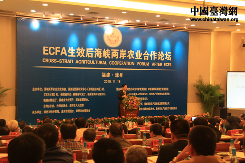 中國臺灣網11月18日漳州消息 “ECFA生效後海峽兩岸農業合作論壇”18日下午在漳州舉行,本屆論壇宗旨為:突出ECFA生效後現代農業、兩岸合作兩大亮點,搭建交流平臺,創造合作商機,推動海峽兩岸農業優勢互補、合作雙贏,來自兩岸的業界專家與學者圍繞這一宗旨展開了熱烈的討論。