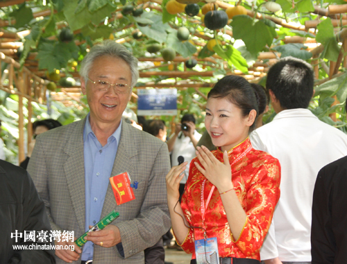 臺灣農業專家參觀菜博園並認真聽取講解員講解。(中國臺灣網 王思羽 攝)