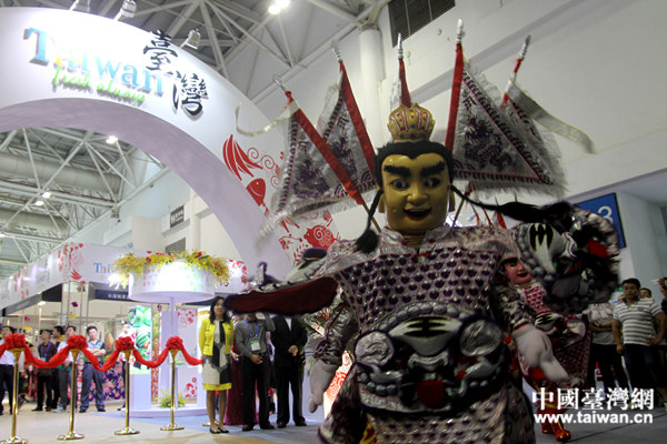 開幕儀式上,組展方還邀請臺灣藝人表演了電音和臺灣傳統的民俗相結合的藝陣三太子表演,俗稱“電音三太子”。濃眉大眼的“電音三太子”伴隨著動感音樂的表演,讓在場觀眾不僅觀看到臺灣琳瑯滿目的特色農產品,還欣賞和體驗到臺灣地道的本土舞蹈。