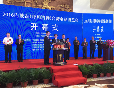 6月10日,為期4天的2016內蒙古(呼和浩特)臺灣名品博覽會在內蒙古國際會展中心盛裝開幕。臺灣貿易中心董事長梁國新、海峽兩岸經貿交流協會副會長王暉出席開幕儀式。