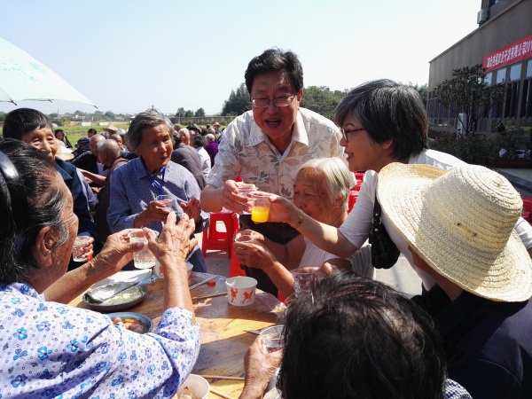 郭董夫婦給老人敬酒(攝影:魏紅)