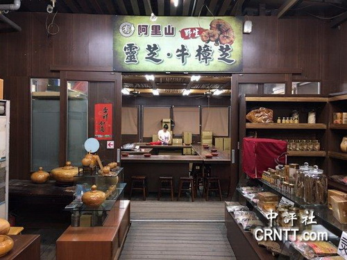 阿里山公路的茶行都間賣靈芝、牛樟芝,只見店員顧著空蕩蕩的店面。