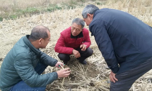 11月15日,應荊門市臺辦的邀請,長春國信現代農業科技發展股份有限公司總顧問、臺灣農業專家林克麟先生,來到京山縣曹武鎮墩子河村,對剛收割的臺灣香稻種植地塊土壤進行把脈問診,為明年擴大種植面積進行技術儲備和前期改良。