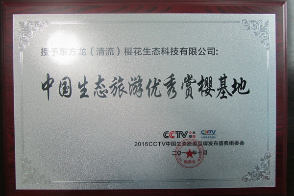 東方龍櫻花公司獲“中國生態旅遊優秀賞櫻基地”榮譽稱號。