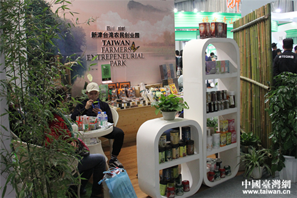 在第14屆農交會上,四川成都新津臺創園緊跟互聯網發展時代潮流,其展示區專門提供二維碼供參觀者消費者掃碼關注。(中國臺灣網 劉暢 攝)