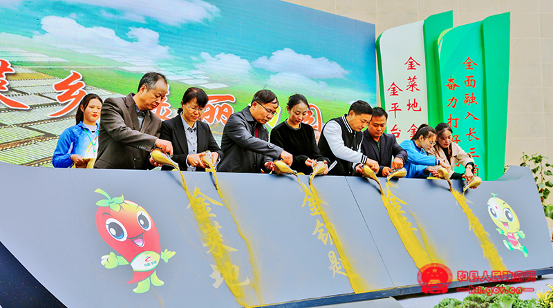 儀式上,“金菜地”結對單位代表、“金鑰匙”捐助方代表、“金飯碗”受益者代表、“金平臺”代表共同啟動第十一屆蔬菜博覽會暨第五屆農業嘉年華開幕儀式。(和縣臺創園管委會)