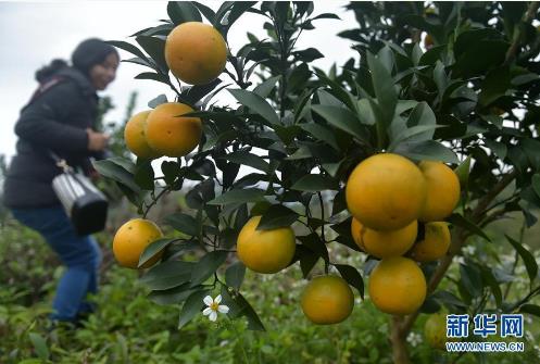 12月1日,遊客在廣西欽州欽南臺灣農民創業園採摘黃金橙。