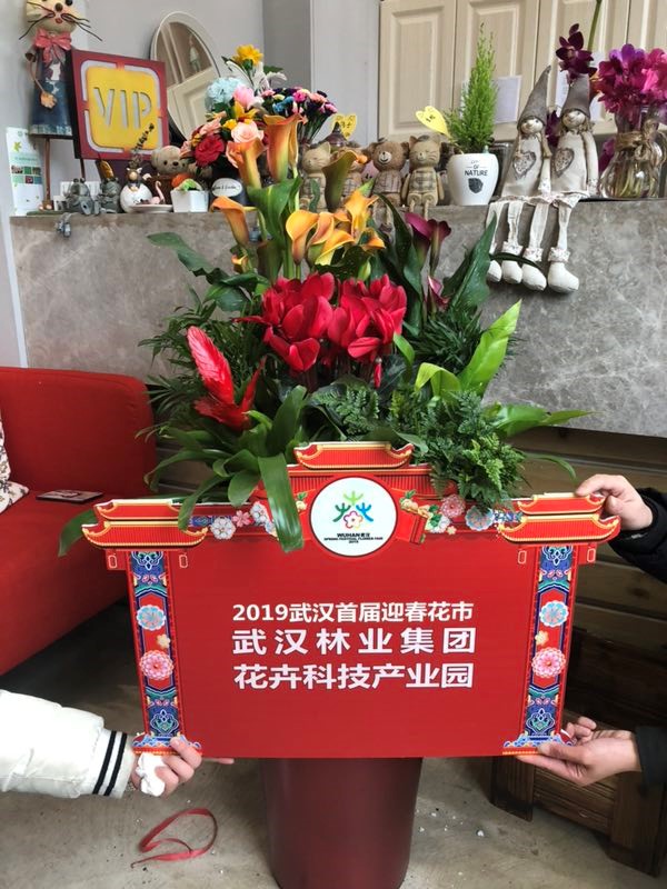 武漢林業集團花卉科技產業園“迎春花市”主會場,帶來由彩色馬蹄蓮、仙客來、卡莉(鳳梨)以及其他綠植盆栽所組合而成的祝福花箱,寓意:豬年送福迎新春,百花齊放萬事(市)順;紛至沓來齊歡樂,綠色惠民享生活。結語:迎春花市樂享生活!(圖片來源:黃陂臺創園)