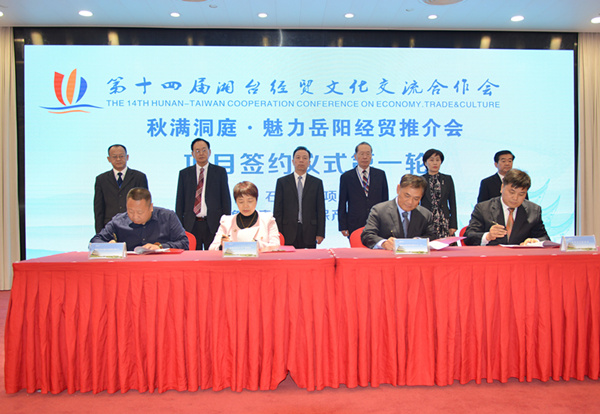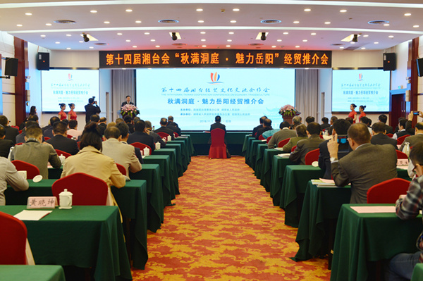 海峽兩岸農業合作網11月9日岳陽訊 11月1日,第十四屆湘臺經貿文化交流合作會“秋滿洞庭·魅力岳陽”經貿推介會在岳陽市舉行。中國國民黨前副主席陳鎮湘、全國臺企聯創會會長張漢文、市委書記劉和生、市委副書記、市長李愛武、市委統戰部部長熊煒、市政協副主席黎四清、市政府秘書長劉傳漢、縣委副書記、縣長曾平原參加。