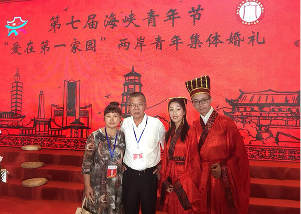 在8月7日舉行的“愛在第一家園”兩岸青年集體婚禮現場,包括在福清臺創園創業的臺灣青年劉元愚、吳嘉欣在內的30對兩岸新人在眾多現場觀眾祝福聲中舉行了集體婚禮。臺商劉進裕、陳春螢夫婦二人在婚禮現場親眼見證了兒子人生中這一重要時刻。