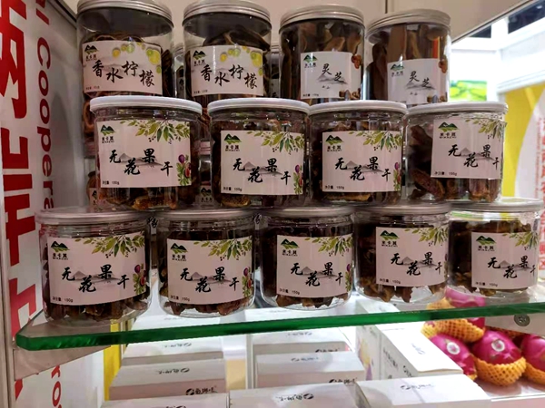 此次福清臺創園參展產品分別為:1、福清弘晟食品有限公司的“漁鄉味”休閒食品係列及水產制品係列;2、福建三葉草農業有限公司的黃龍果及百香果;3、福建米卡其農業科技有限公司的檸檬、無花果等水果幹片; 4、福建新茂農業科技開發有限公司的臺灣“軟枝大紅”和“紅寶龍”紅心火龍果。