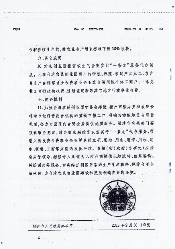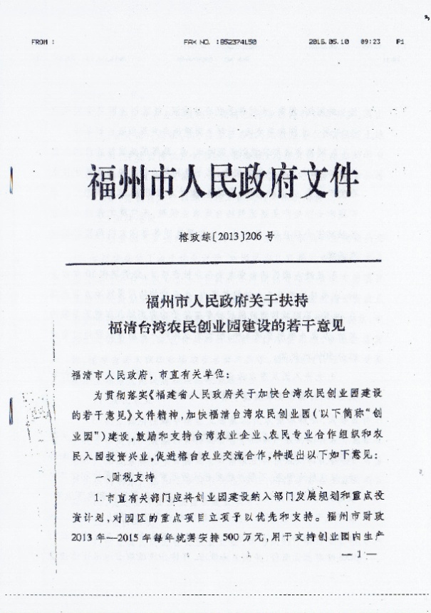 福州市人民政府關于扶持福清臺灣農民創業園建設的若幹意見