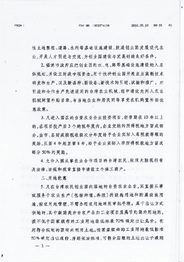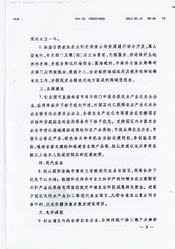 福建省人民政府關于加快臺灣農民創業建設的若幹意見