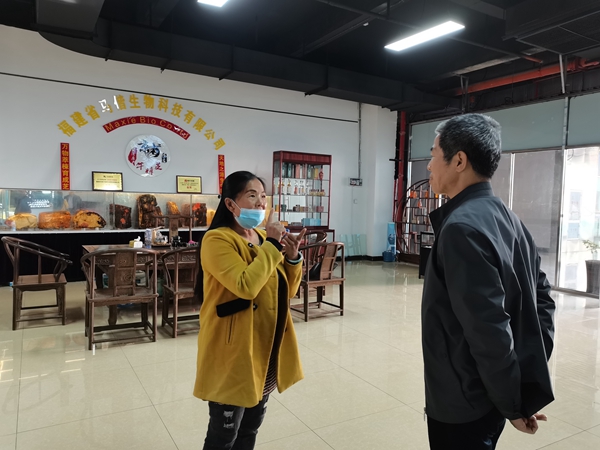 海峽兩岸農業合作網訊 2月4日下午,莆田市臺港澳辦黃建富副主任赴仙遊臺灣農民創業園調研,黃建富副主任一行先後深入到園區企業福建馬偕生物科技有限公司位于仙遊京東數字經濟產業園內的牛樟芝展示廳,仙遊縣唐品生態農業有限公司種植基地,仙遊縣金瑤農場種植基地現場察看企業生產經營情況,下一步發展規劃,並詳細了解臺胞臺屬的生活情況及與臺灣親人聯絡情況,並開展慰問活動,送去了黨和政府的關懷。(仙遊縣臺灣農民創業園管委會 傅加興)