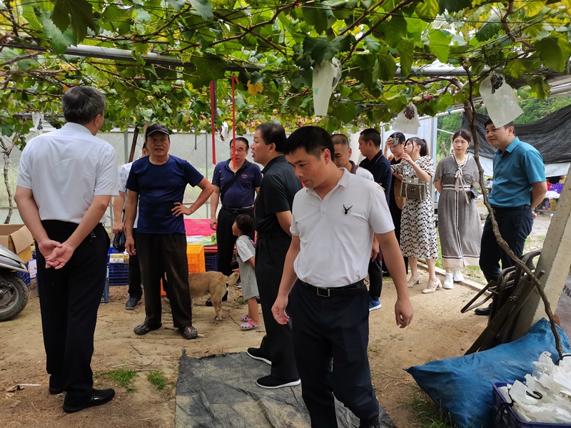 海峽兩岸農業合作網訊 7月29日上午,湖南省長沙市臺辦副主任袁湘鄂、長沙市臺協常務副會長陳俊任、鐘晨亮一行深入仙遊縣臺創園區內的仙遊縣金吉農場、福建好柿多生態農業有限公司參觀考察,現場察看了臺灣葡萄種植基地、好柿多休閒農場開發建設情況。並與兩個企業負責人深入交流,詳細了解企業生產經營情況和園區的惠臺政策。
