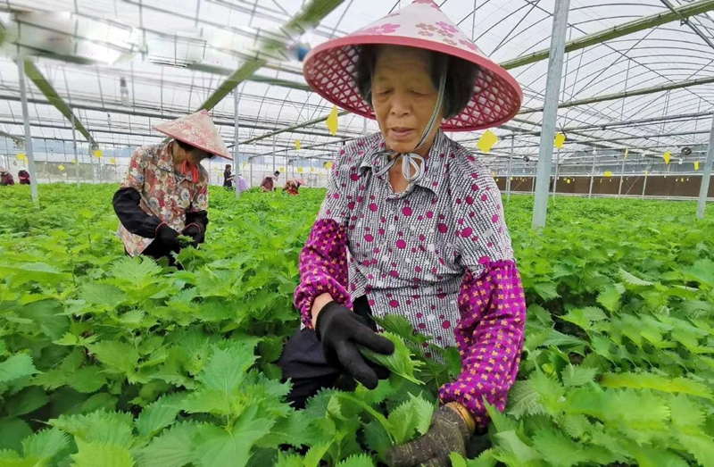 在惠民特菜生產高標準示范基地的溫室大棚中,工人們正忙著採摘紫蘇。“我們是福建唯一一家規模化種植紫蘇的公司,種植有60畝紫蘇,產品配送全國各地,目前市場需求量與日俱增,正計劃擴大種植面積。”惠民農業綜合開發有限公司總經理戴禮兵介紹。該基地目前配備有智能溫控大棚、特菜標準化生產車間、冷鏈保鮮庫、集約化自動化育苗設備、園區排灌水設備等智能設施,還有物聯網、綠色防控兩大係統,基地內各種智能設備有序運轉。
