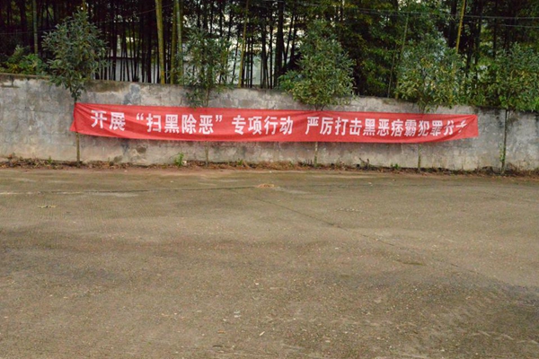 永信達公司基地懸挂掃黑除惡標語。(清流臺創園管委會 林修磊 攝)