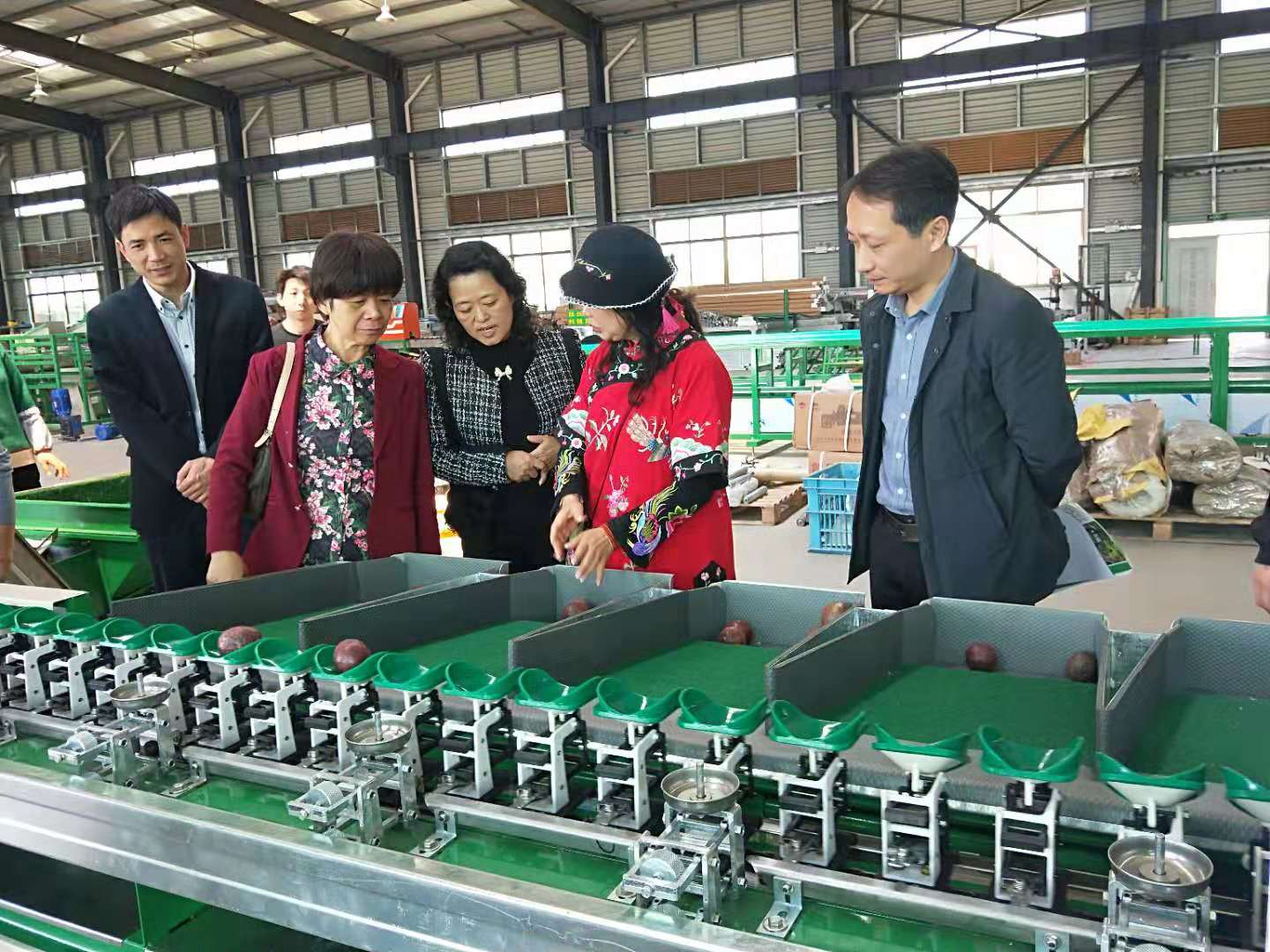 李岱一一行首先來到漳浦農機園參觀考察,聽取仂園工業有限公司相關工作人員匯報及了解公司所設計研發的“農林智能灌溉控制係統”項目,並到漳浦科盛機械有限公司參觀考察水果分級機、分選機等設備的運行實況。