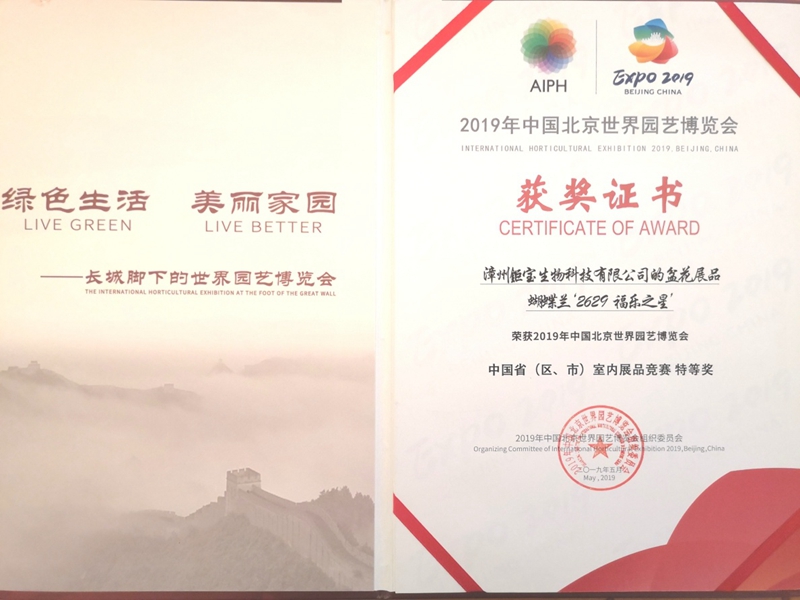 海峽兩岸農業合作網訊 近日,從2019年中國北京世界園藝博覽會(簡稱2019北京世園會或北京世園會)組委會傳來喜訊,由漳浦臺灣農民創業園漳州鉅寶生物科技有限公司5月份選送福建館的31個蝴蝶蘭參展品種全部獲獎,分別為特等獎3個、金獎3個、銀獎1個、銅獎24個,贏得了大滿貫。(福建漳浦臺創園)