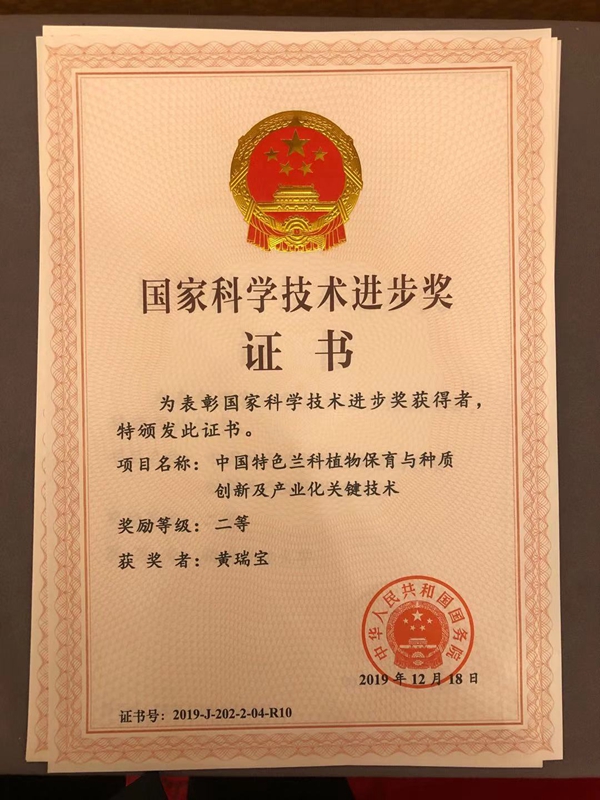 據悉,該項目是大陸蘭花領域的第一個國家科技進步獎,也是福建省花卉產業領域的第一個國家科技進步獎。該項目取得“兩大突破”:一是率先突破了蘭花基因沉默技術瓶頸,解析了花色、花香調控關鍵基因,為蘭花的功能基因驗證和分子設計定向育種提供手段;二是率先攻克兜蘭組織克隆世界性難題,有14種兜蘭是世界上首次無菌播種成功,把兜蘭體細胞克隆變成現實,有力推動兜蘭規模化和規范化生產。獲得“四大創新”:一是資源調查的蘭科植物佔區域的97.8%的屬和83.2%的種,建成大陸最大的蘭科種質資源庫,制定實施保育新策略,推動一批珍貴蘭科植物資源成功回歸野外,有效緩解瀕危壓力;二是厘清蘭屬、蝴蝶蘭屬、石斛屬和兜蘭屬係統發育關係,解析花色、花香調控關鍵基因,建立轉化體係,為進一步推動蘭花資源遺傳改良奠定了堅實基礎;三是創新育種手段,使蘭花育種周期縮短一半以上,各項性狀指標均大幅度優于傳統育種手段的品種;四是創建高效繁育技術體係,在生產實踐中提高增殖係數達5.5-10倍以上,降低成本20-33%,提高單位產量30-100%,有力推動大陸蘭花產業智能化、規模化和標準化生產,促進蘭花產業提質增效、轉型升級。堅持聚焦需求、問題導向,研發運用真菌共生生境營造技術、野外回歸技術、基因沉默技術、“試管開花+雜交”技術、兜蘭無菌萌發技術、兜蘭組織克隆技術、金線蓮一次性成苗技術、花期調控技術等“八大關鍵技術”,有效破解蘭花保育和產業化發展中的重大技術瓶頸,大幅提升我國蘭花產業的國際競爭力。