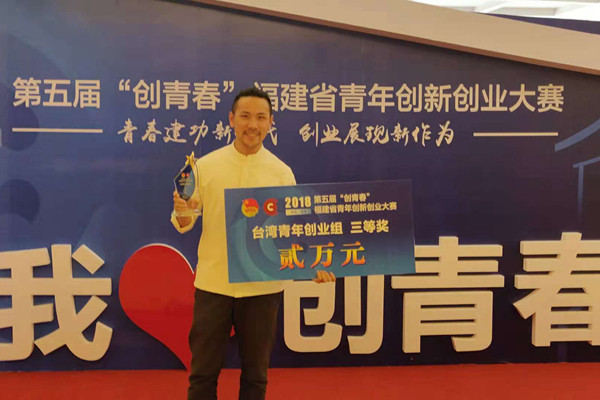 海峽兩岸農業合作網12月10日漳平訊 11月28日-30日,以“青春建功新時代 創業展現新作為”為主題的第五屆“創青春”福建省青年創新創業大賽在漳州舉行。福建龍岩漳平臺灣農民創業園(簡稱漳平臺創園)創業臺灣青年陳耘嘉榮獲“創青春”大賽“臺灣青年創業組”三等獎。