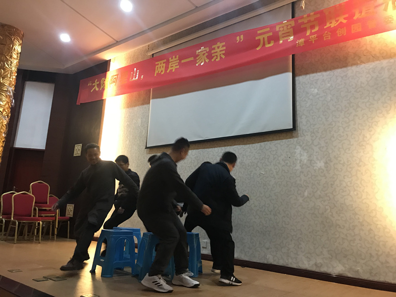 座談會後,園區臺商與管委會幹部一起參與搓湯圓、包餃子、猜燈謎、搶凳子、夾珠子等趣味遊戲。其中臺商陳建富三代同臺搶凳子、謝東慶與93歲高齡的父親謝傳河同臺合唱《小城故事多》把趣味活動推向高潮。