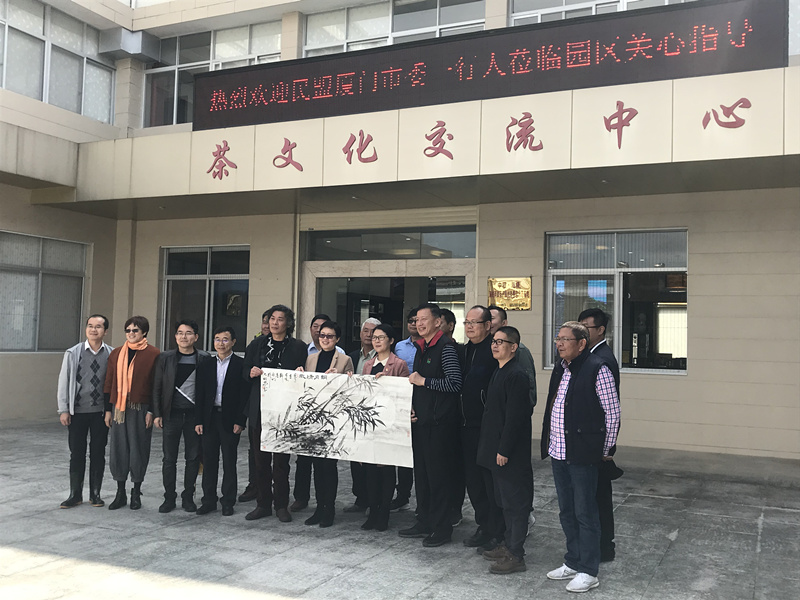 民盟廈門市委員會一行也向臺商聯誼會贈送了書籍、字畫。(圖片來源:漳平臺創園)
