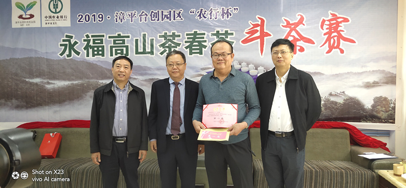 當天上午,參會嘉賓還觀看指導了2019?漳平臺創園區“農行杯”永福高山茶春茶採茶比賽、鬥茶大賽,與臺商臺農一同品評賽事活動,並為賽事的獲獎者頒發榮譽證書及獎金,旨在增強臺商臺農採好茶、出好茶的效果,讓臺商臺農在大陸創業發展更有信心,共同為“第一家園”的打造貢獻力量。(海峽兩岸農業合作網、漳平臺創園管委會聯合報道)