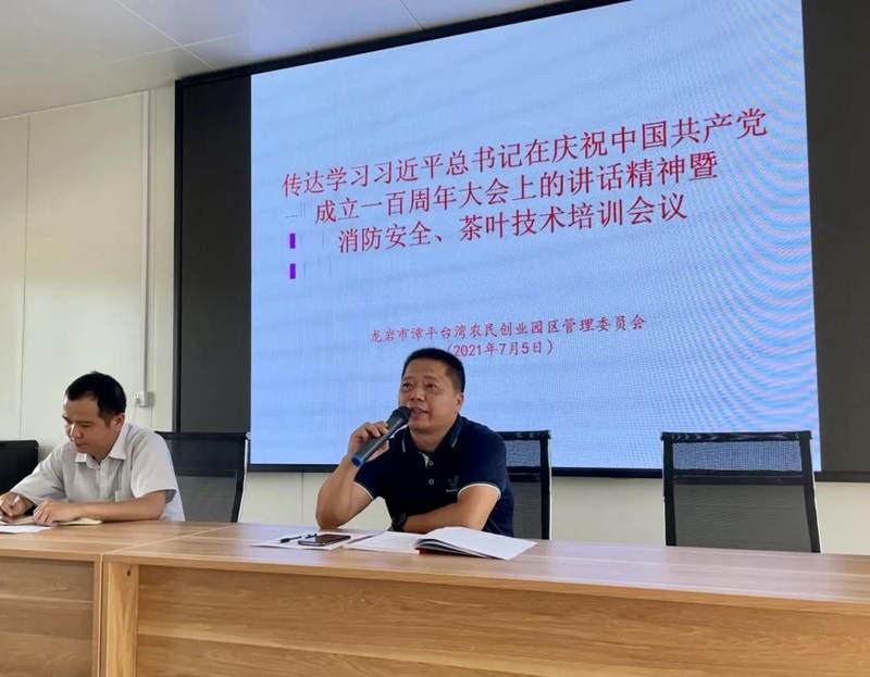 海峽兩岸農業合作網訊 7月5日,漳平臺創園組織召開會議,傳達學習習近平總書記在慶祝中國共產黨成立100周年大會上的重要講話精神,交流學習體會,部署貫徹落實相關工作。