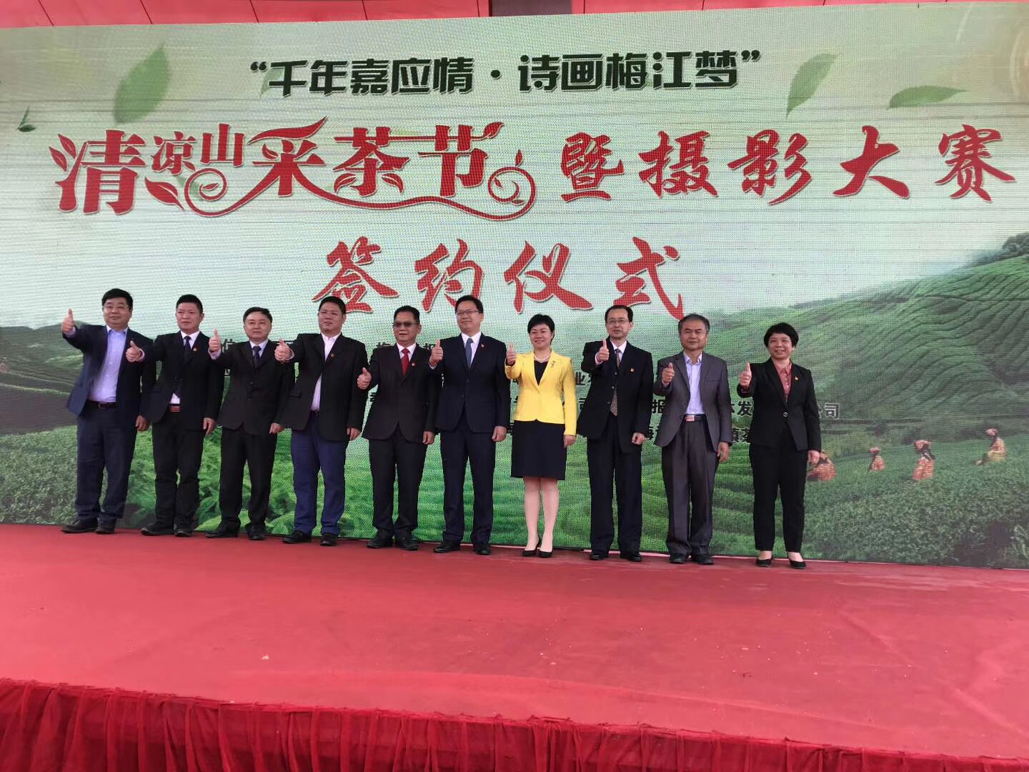 海峽兩岸農業合作網4月18日梅江訊 “千年嘉應情·詩畫梅江夢”清涼山採茶節暨攝影大賽4月13日在廣東梅州梅江臺灣農民創業園(簡稱臺創園)核心區西陽鎮清涼村啟動。梅州市委常委、宣傳部長陳曉建,梅江區區委書記朱國城,梅江區區長鐘秀堂,梅州日報社社長羅金良等領導嘉賓及相關單位負責人,梅州市作家、攝影家、當地群眾等參加了啟動儀式。