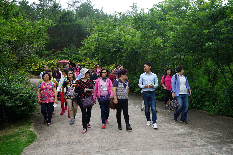 在愛麗絲莊園考察期間,先後參觀了觀賞南瓜種植基地、恐龍園、水庫周邊景點提升工程等,參訪團成員趣味盎然、流連忘返,為園區的旺盛人氣和滿園春色點讚,並對如何增加休閒農業的觀光元素提出了建議。
