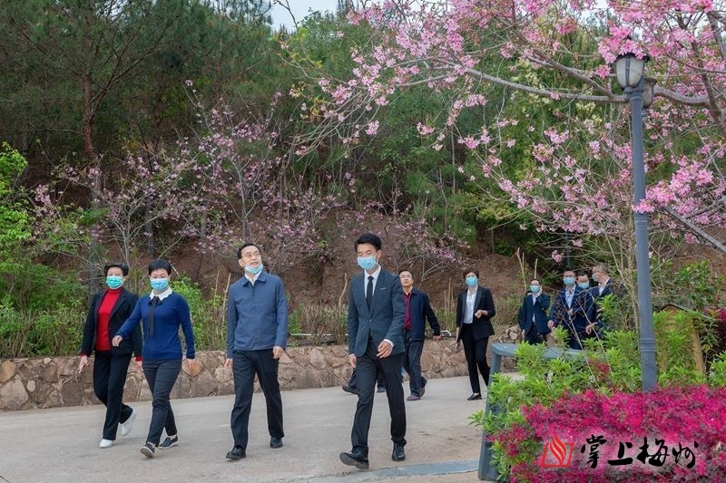 梅州市委副書記、市長張愛軍(左三)等市、區領導在園區企業愛麗絲莊園調研現場(圖片來源:梅州日報)