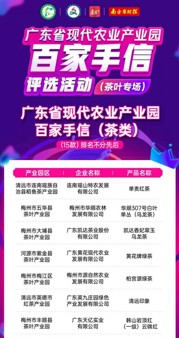 廣東省現代農業產業園百家手信(茶類)評選結果