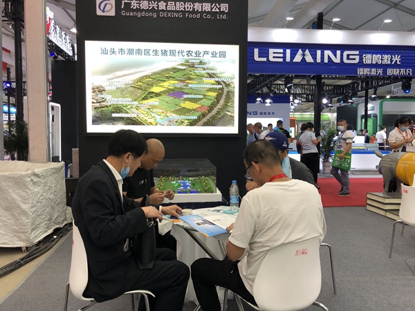 海峽兩岸農業合作網訊 2020年9月4日-6日,汕頭潮南臺創園企業廣東德興食品股份有限公司前往長沙國際會展中心參加全球前三、亞洲第一的國際畜牧專業綜合盛會——第十八屆(2020)中國畜牧業博覽會,德興股份的王牌產品德興係NSR種豬、德興北歐智能農場和生態健康智能養殖環保體係等在畜博會上齊亮相,吸引了參會人員駐足欣賞。