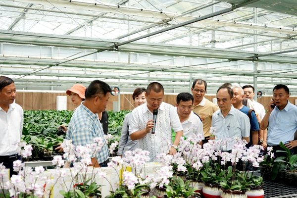 孫德聰一行先後實地考察了全國最大蝴蝶蘭出口基地淮安皇達花卉有限公司、全國重點文保單位京杭大運河三閘遺址、枚乘書院等,了解企業鮮切花出口、精油萃取的生產銷售及4A級景區籌備建設等相關情。