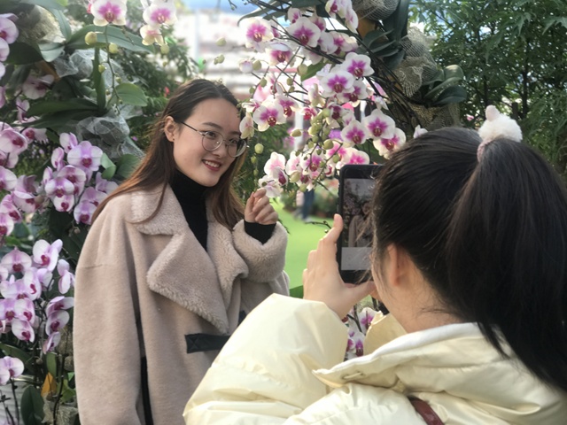 走進溫暖如春的展廳,色彩繽紛的蘭花“隧道”里,拍照遊客絡繹不絕;經過巧手點綴,“蘭花樹”“孔雀迎春”等主題展區也是吸睛無數;展廳北側,在2019年中國北京世界園藝博覽會上摘得獎牌的“錦繡南京”“水韻江蘇”等展品,以及兜蘭、大花惠蘭等盆景也是諸多鏡頭聚焦的“主角”;欣賞過顏色絢麗的洋蘭,金陵蘭園內展示的素雅國蘭也不容錯過……據悉,在本屆蘭花展上,市民可以欣賞到300多個品種的十萬盆蘭花。此外,本屆蘭花展還現場展示了20多個臺創園自行研發的蝴蝶蘭新品種,其中,一款少見的帶有香味的蝴蝶蘭新品種格外引人注意。大飽眼福後,還可以前往旁邊的展廳,江寧橫溪的小年糕、臺南的擔仔面等特色美食可以滿足市民們的味蕾。筆者從開幕式現場獲悉,為了豐富市民遊覽內容,本屆蘭花展期間,園區還將推出插花表演,盆栽比賽,臺灣商品、農副產品售賣等豐富多彩的活動。