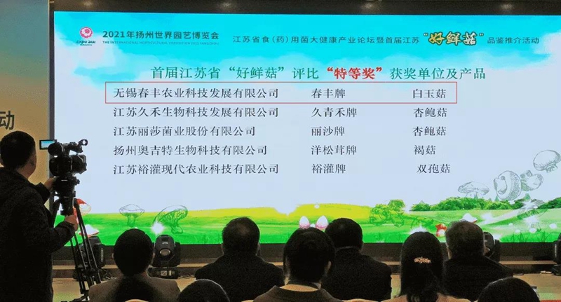 海峽兩岸農業合作網訊 在江蘇省農業農村廳日前舉辦的首屆江蘇“好鮮菇”品鑒推介活動中,錫山臺創園下轄臺資企業無錫春豐農業科技發展有限公司的白玉菇產品榮獲特等獎,蟹味菇產品榮獲金獎。