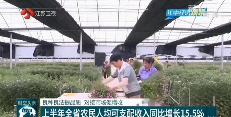 鹽城市鹽都區臺創園李莊村黨總支書記商文榮說:“菊花、草花、蘭花上市季節是錯開的,這樣全年培育就提供了穩定的就業崗位,農戶收益也有了保障。整個花卉產業為我村新增了600多人次的就業崗位,人均就業年增收超3萬元。”(鹽都臺創園)