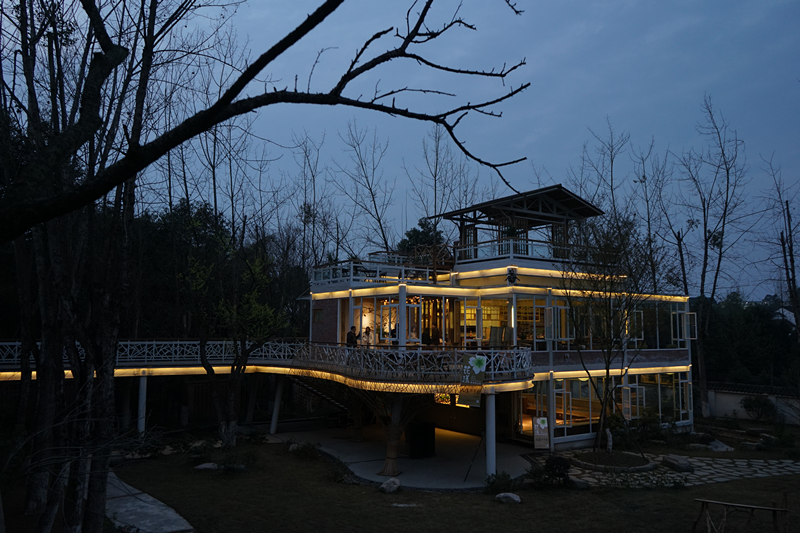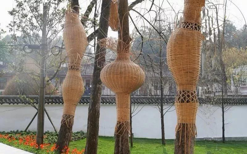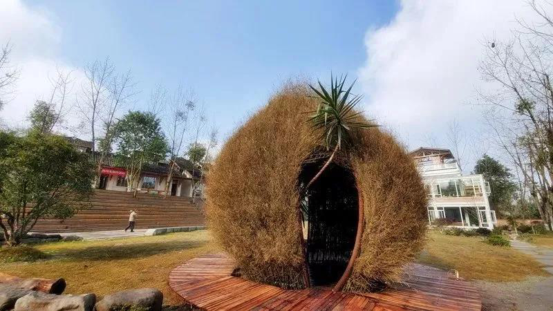 草坪竹藝雕塑空間,形似種子破土萌發,茁壯成長,就像九蓮樂學村基地生機勃勃,培育鄉村振興創新人才。