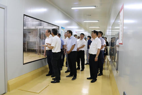 圖為考察團視察液蛋車間。(來源:慈溪臺創園)