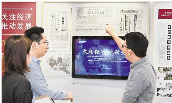 陳紀蔚(右)帶領記者和大學生重溫《一只梨賣了五元錢》。浙江新聞客戶端記者 吳元峰 尹海木 攝