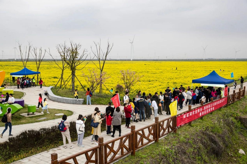 目前,千畝油菜花正是盛花期,杭州灣畔,大風車下,一片金燦燦的花田等你來打卡。(慈溪市臺灣農民創業園)
