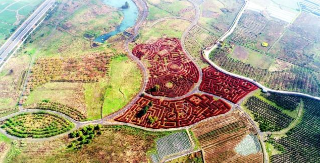 海峽兩岸農業合作網3月29日仙居訊 3月26日,在浙江臺州仙居臺灣農民創業園聞道農業休閒觀光基地,由苗木種植拼合而成的巨型“太極八卦”和“迷宮”等圖案,在春日暖陽照耀下炫麗奪目,構成了一幅生機勃勃的“鬧春圖”,讓路人流連忘返。(海峽兩岸農業合作網、仙居臺創園管委會聯合報道)