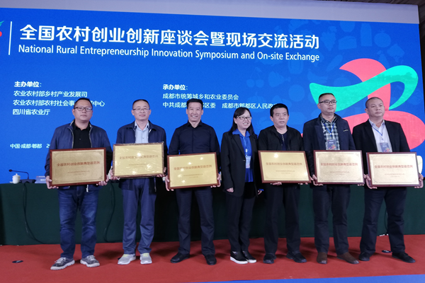 10月10日,在成都召開的“全國農村創業創新現場交流活動”現場會上,石林臺創園參會代表,接受農業農村部頒發的“全國農村創業創新典型縣范例”榮譽牌匾和榮譽證書。(石林臺創園管委會)