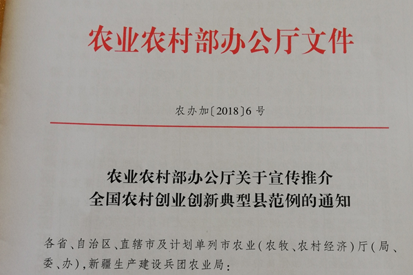 石林縣喜獲“全國農村創業創新典型縣范例”授牌。(圖片來源:石林臺創園管委會)