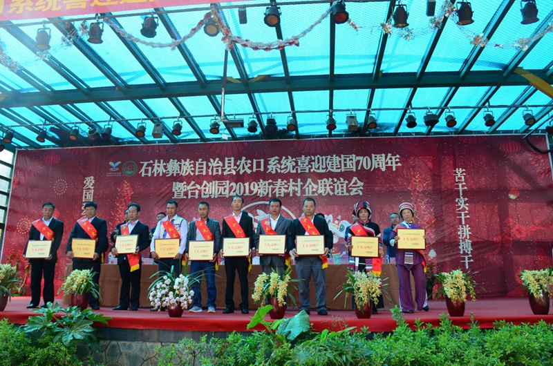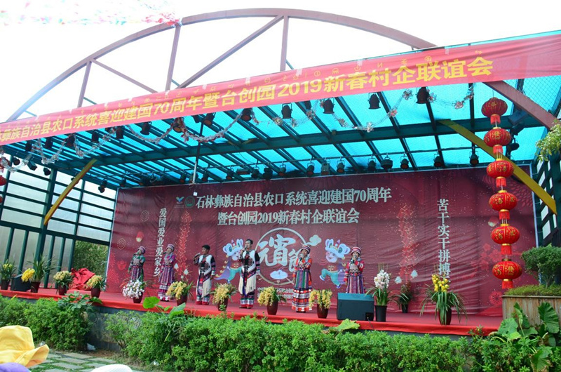 石林縣農口係統喜迎建國70周年暨臺創園2019新春村企聯誼會隆重舉行。(圖片來源:石林臺創園)
